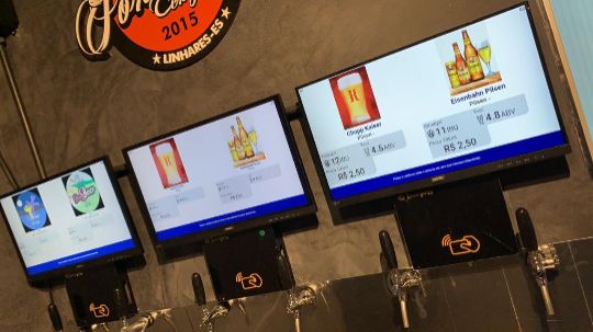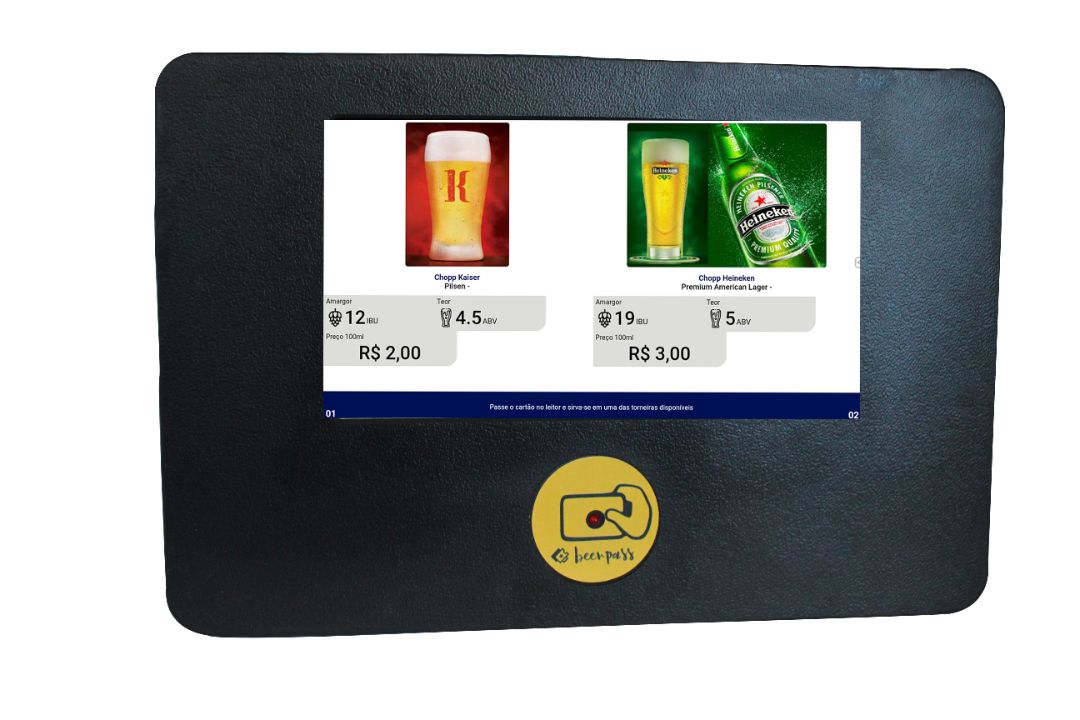 Fica posicionado próximo à torneira, e é onde o cliente pode visualizar e identificar o tipo de chopp disponível, e outros detalhes como preço por 100ml, nome, tipo, IBU, etc. Além disso, é por meio deste módulo que o cliente obtém as informações de seu consumo durante ou ao final do processo de extração do chopp.